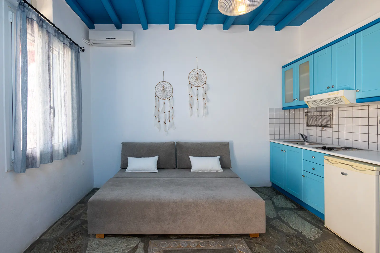 Φιλοξενεί άνετα 3 άτομα & κατόπιν συνεννόησης μπορεί να χωρέσει κρεβατάκι για επιπλέον άτομο!